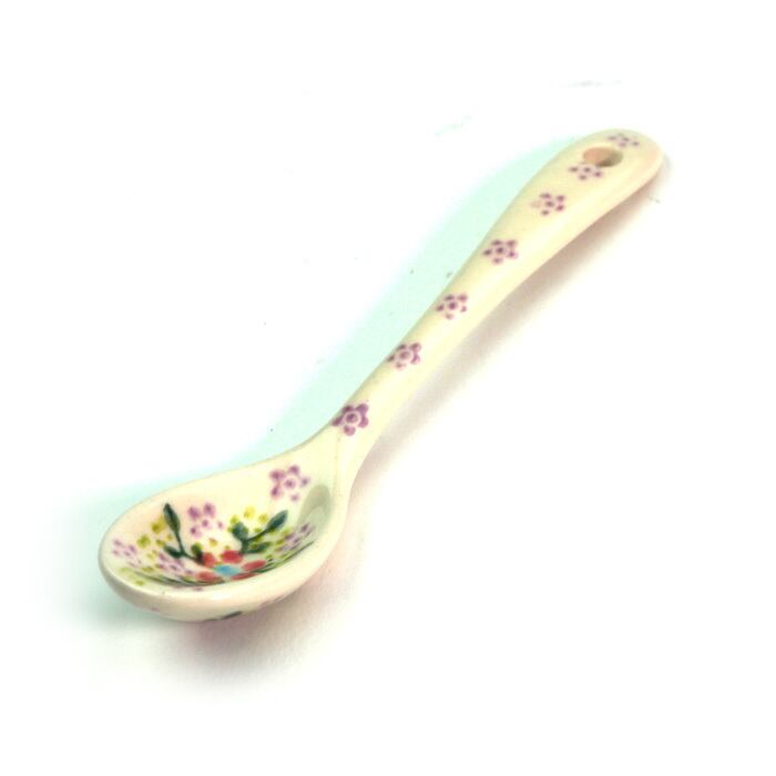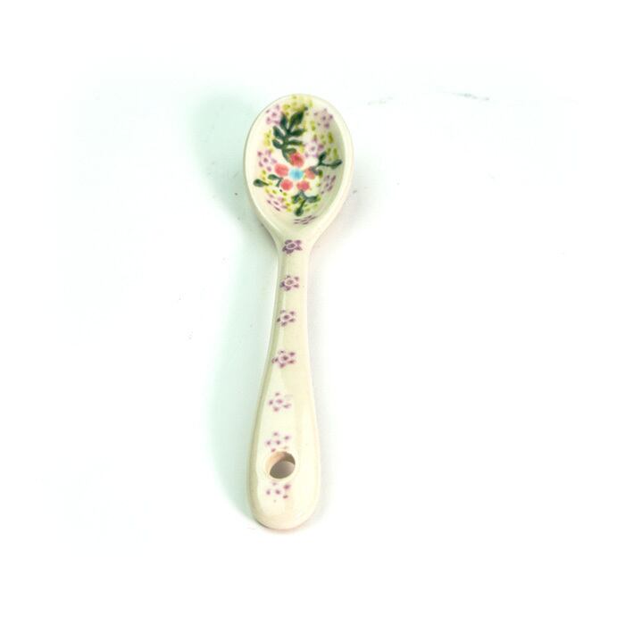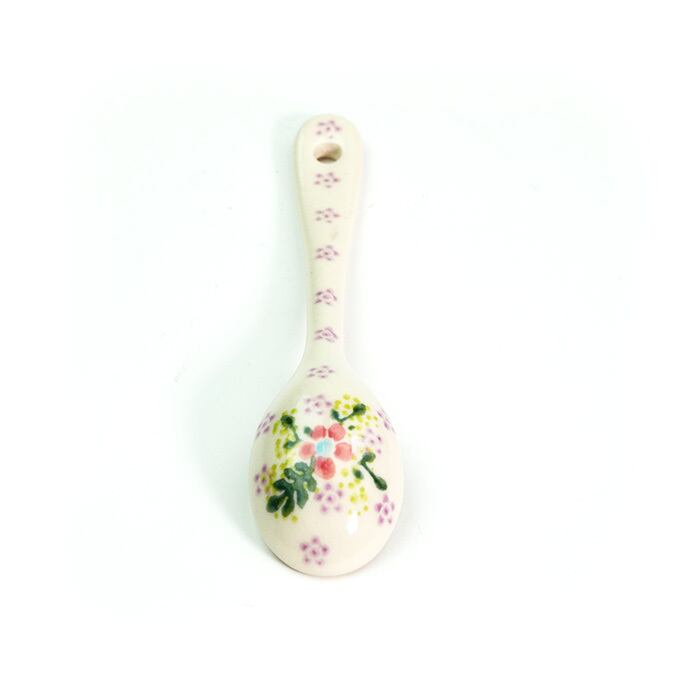 手仕事の粋を感じるポーリッシュポタリーのスプーンです。表と裏のどちらにも細かな絵付けが施され、プリントされたものと比べるまでもなく高級感を味わっていただけます。プリンやゼリーなどのデザートに添えたり、ジャムをすくったり、大きなマグにスープを注いでこのスプーンを添えても絵になる愛らしさです。