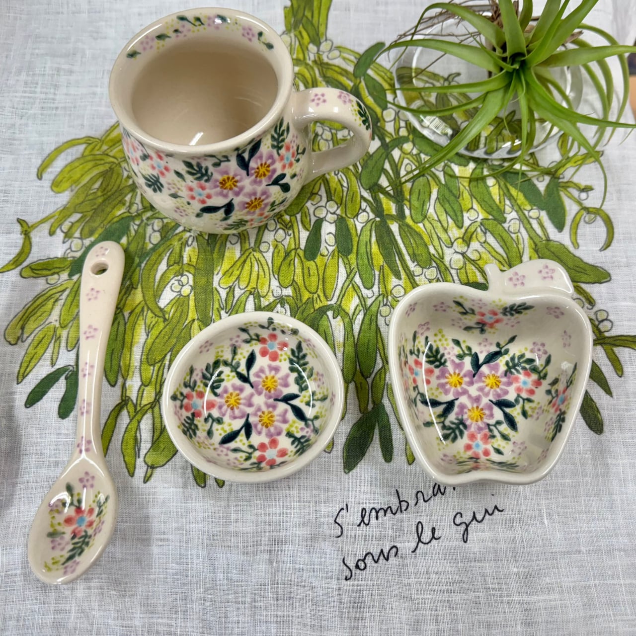 ポーリッシュポタリーの絵柄はひとつひとつ職人の手によって描かれ、柄の位置のズレや濃淡のちがいがみられます。プリントされた食器とは異なり、どれひとつとして同じものはありません。また、近代化された工業製品とは違って昔ながらの手法によってつくられています。そのため、以下のような現象が見受けられることがありますが、ハンドメイド製品ならではの特徴で、使用上は全く問題ありません。
