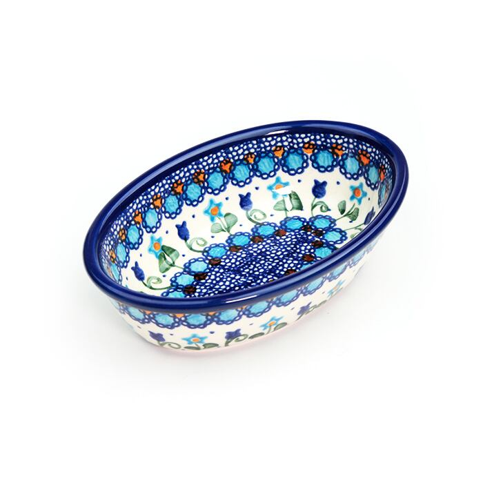 一人前の小さなオーブン皿として誕生しました。コクのあるクリーム系のグラタンや小さなドリアにぴったりです。小さな耐熱容器にも外側だけでなく内側にも丁寧に細かく絵付けされているポーリッシュポタリー独特の美しく愛らしい仕上がり。サイドディッシュを盛り付けたり、フルーツボウルとして等、幅広くお使いいただけます。