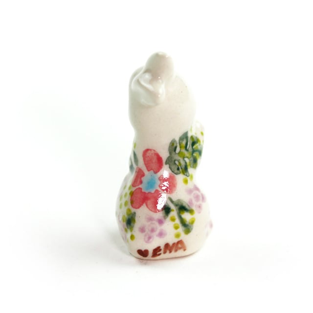 ピンクと紫色の花模様の立ってるミニバニーです。